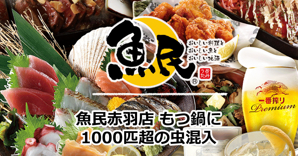 魚民もつ鍋に1000匹超の虫混入